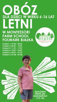 Nadszedł już czas na zapisy na obóz letni w Montessori Farm School! Jak co roku zaplanowaliśmy 6 niezapomnianych tygodni w Folwarku Białka od 27 czerwca do 7 sierpnia! Wiek uczestników: od 6 d 16 lat – UWAGA specjalna oferta dla nastolatków*! Terminy obozów letnich Temat przewodni każdego tygodnia będzie inny! Szczegółowe informacje już wkrótce!!! Program obozów Nasze […]